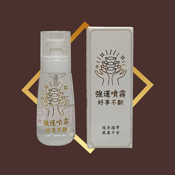 『強運噴霧 好事不斷』這項產品,是本公司匠心設計的產品,期許為有緣人提供一種無法言喻的能量,讓我們在紛擾的生活中,找到內在平衡,強化所有一切的可能。